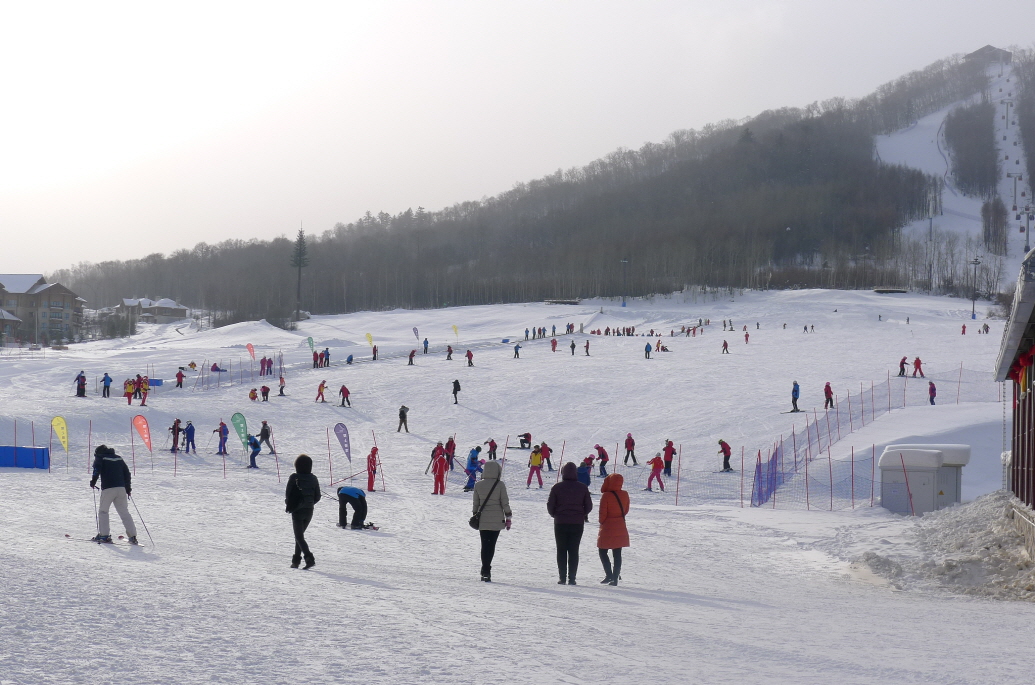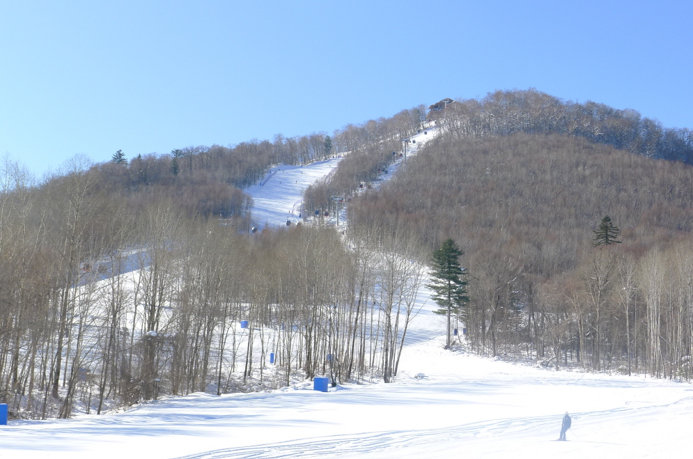 창문을 여니 만달 스키장이 한눈에 들어 옵니다.