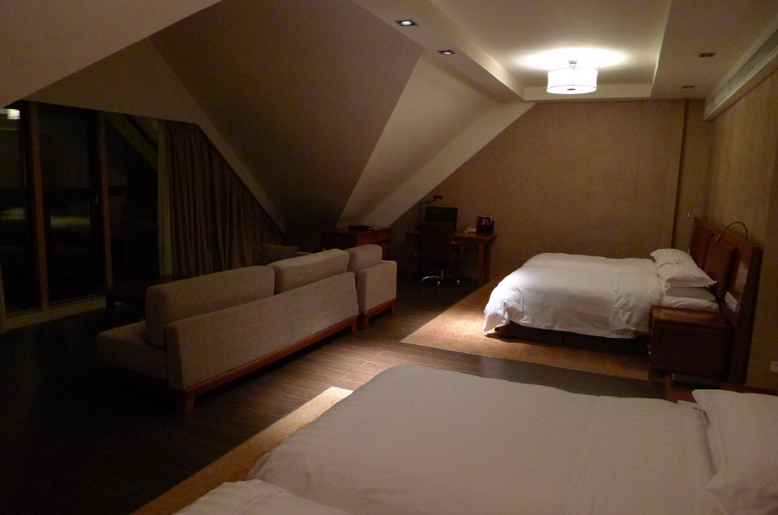 방안이 무척 넓고 창을 향해 커다란 소파가 놓여있어 창밖의 경치를 보기에 좋습니다.패밀리 스위트.