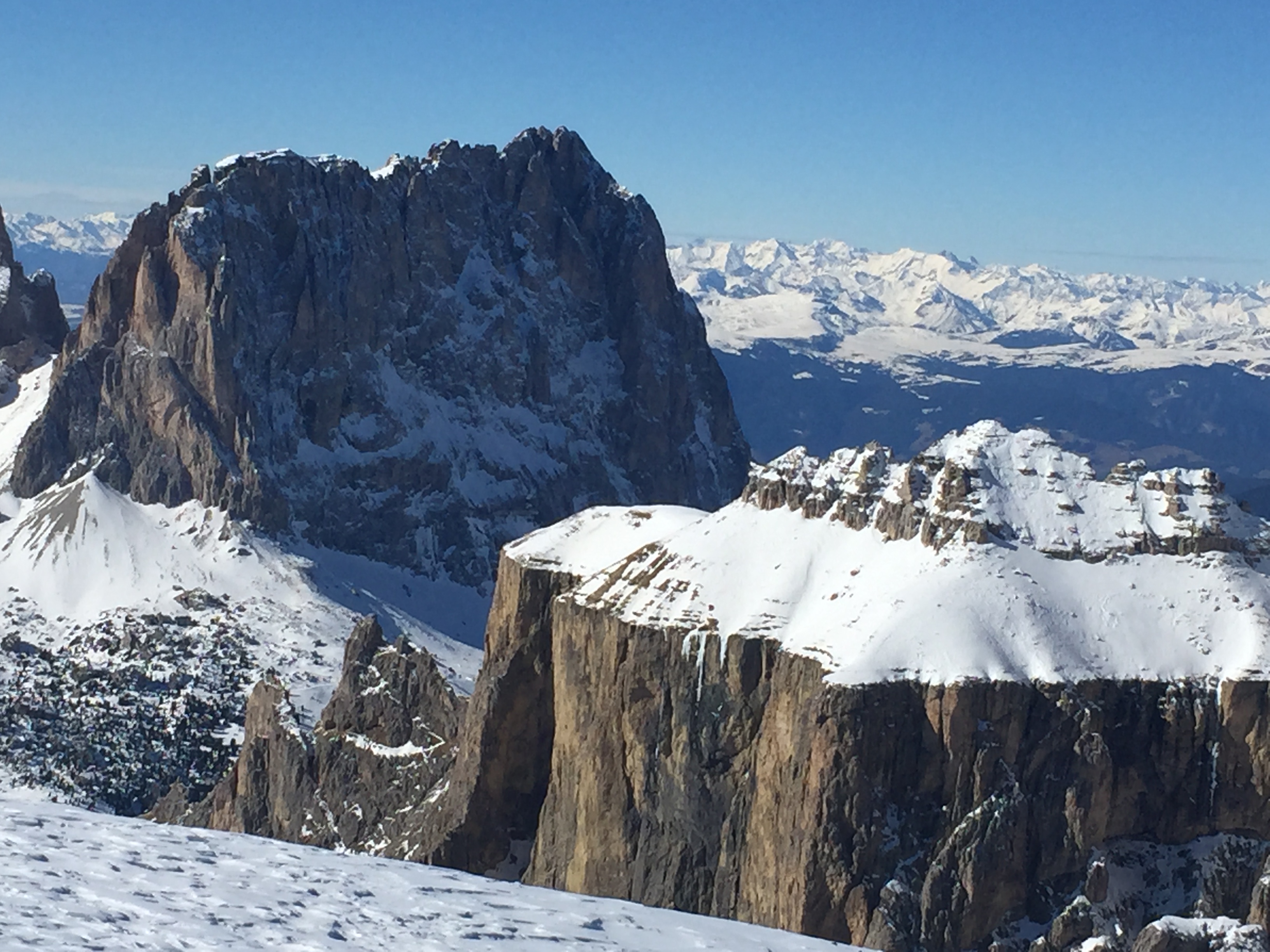 돌로미티는 암반이 바다에서 한꺼번에 떼를 지어 솟아오른 특수지형이다. 암석에 마그네슘, 칼슘, 철 등이 함유되어 있어 특히 일출 및 일몰 시 암석이 붉은색을 띄게 되는데, 이 모습이 돌로미티의 매력이기도 하다. 침식활동이 심하므로 변화도 다양다채(多洋多彩)하다. 최고봉은 마르몰라다(Marmolada)로 3,343m이다. 정상을 올라서면 직선의 첨봉(尖峰)이 주는 위압감은 거역할 수 없이 순응하는 유럽 민족의 원형(原形)을 만들었다는 생각이 든다. 케이블카 뒤로 보이는 붉은 바위산 암벽이 영화 "클리프 헹어"의 주요 촬영지라고 한다.